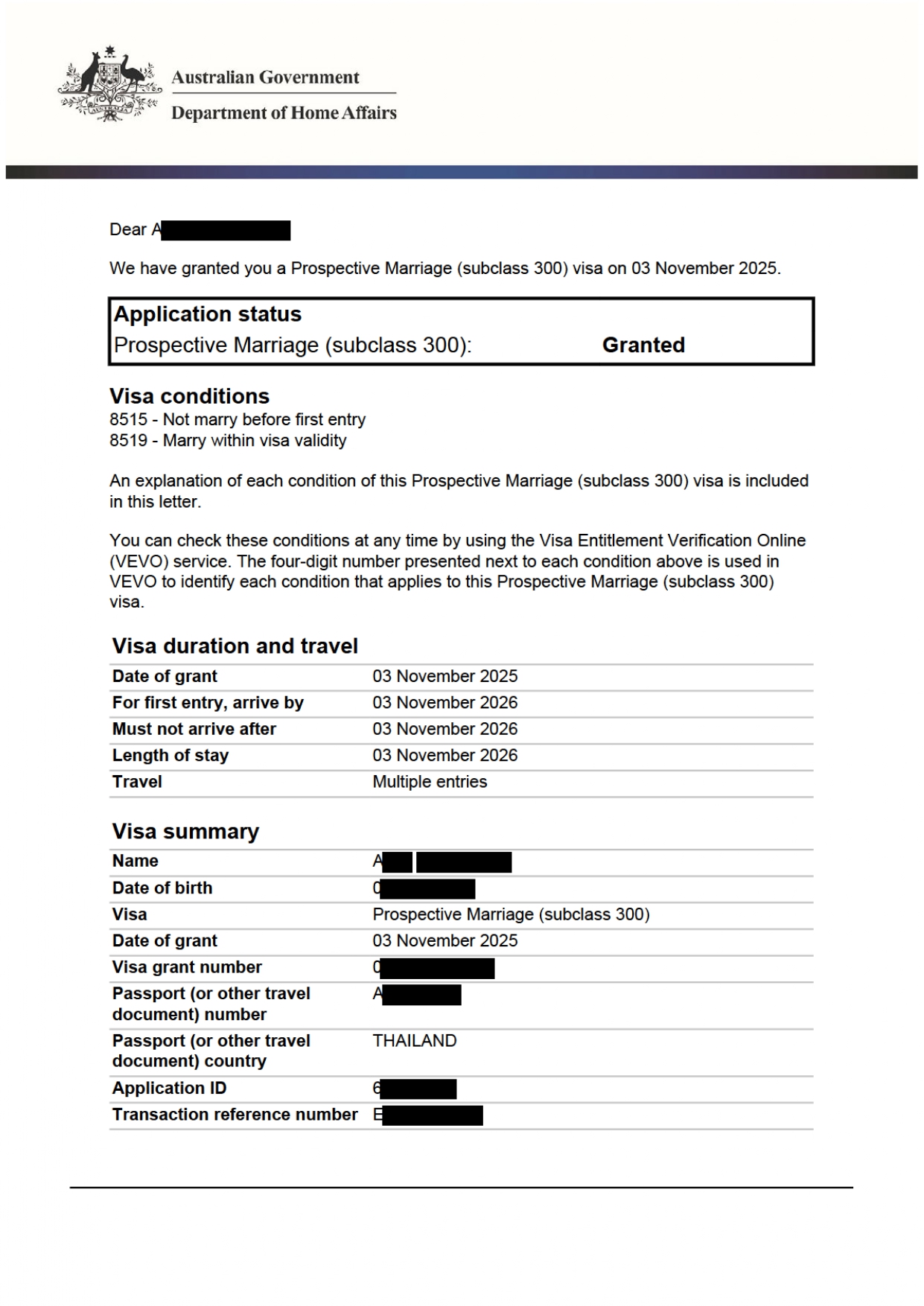 申请过程中,申请人未携带孩子一起申请,但是移民局却要求其孩子做体检,不然可能以申请人不满足PIC4007为由拒签!因为孩子被判给前妻,申请人没有监护权,无法带孩子体检。我们写了详细的legal submission申请了health waiver,最终顺利下签!